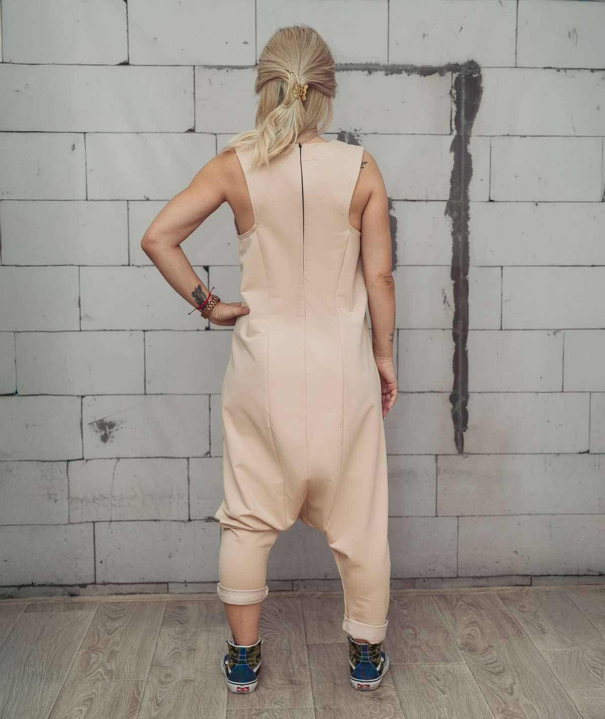 Този гащеризон не е за жената, която иска да се слее с тълпата. Той е за теб – тази, която обожава свободата на потура, но иска силует, който интригува и предизвиква въпроса: „Уау, откъде е това?“. Скритият цип осигурява перфектна линия, а прецизната кройка гарантира, че ще изглеждаш зашеметяващо от всеки ъгъл.